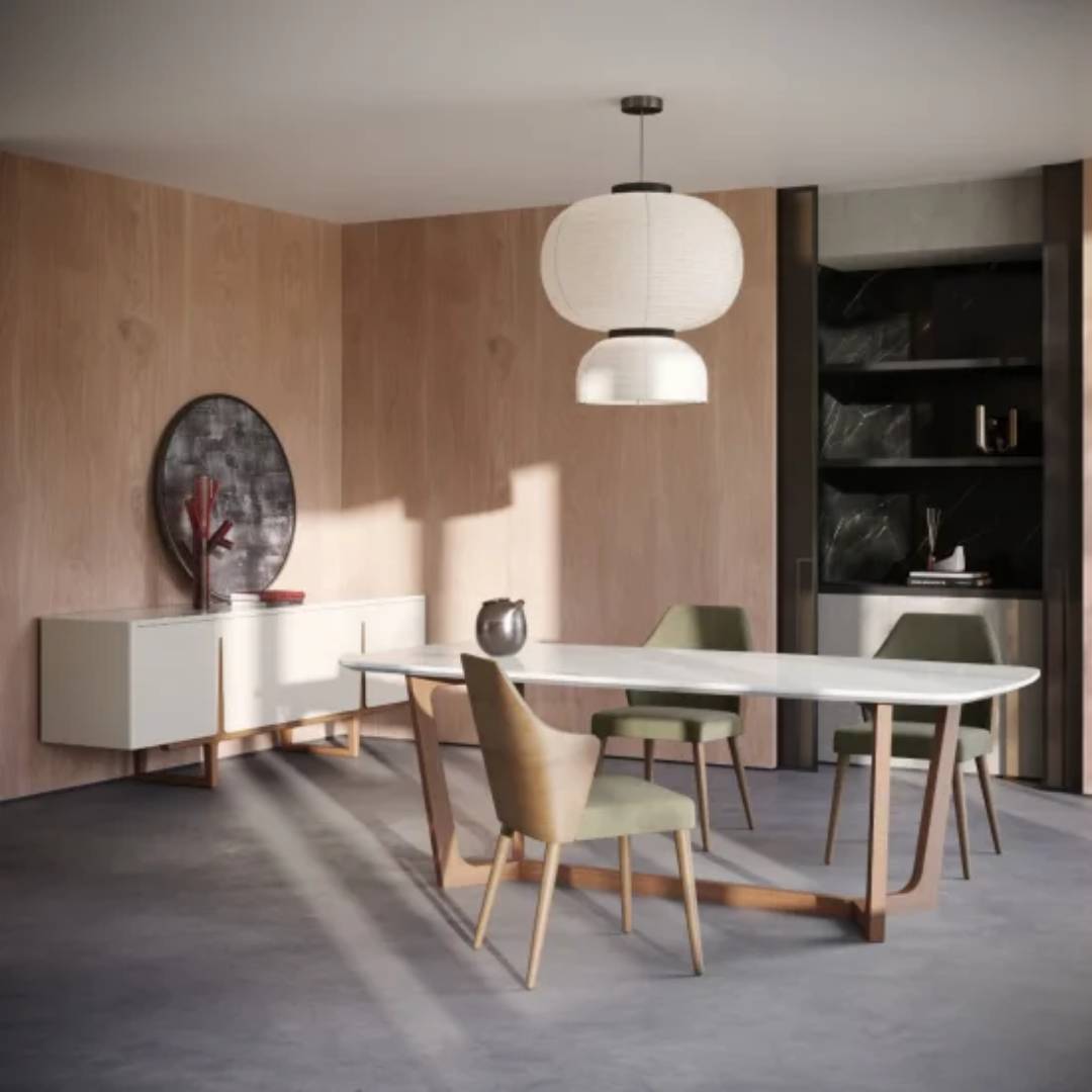 Η τραπεζαρία Carino της Anesisείναι αποτελεί μία κατασκευή με ποιοτικές λεπτομέρειες και σύγχρονη σχεδίαση. Η βάση κατασκευάζεται από μασίφ ξύλο (μέλλιο) , ενώ το καπάκι αποτελείται από κεραμικό κολλημένο επάνω σε ξύλο.